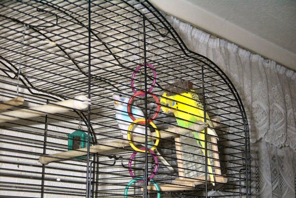 Und Tusnelda? Tja, Tusnelda hat so ihre eigene Methode, um wieder nach Hause zu gelangen. Sie fährt Aufzug! Das sieht dann folgendermaßen aus: Sobald Tusnelda ihren Käfig verläßt, legt Marci einen kleinen Stock auf den Boden. Wenn Tusnelda wieder zurück möchte, setzt sie sich auf den Stock und kreischt was das Zeug hält, bis Marci kommt und den Stock samt Tusnelda zum Käfig hochhebt.
