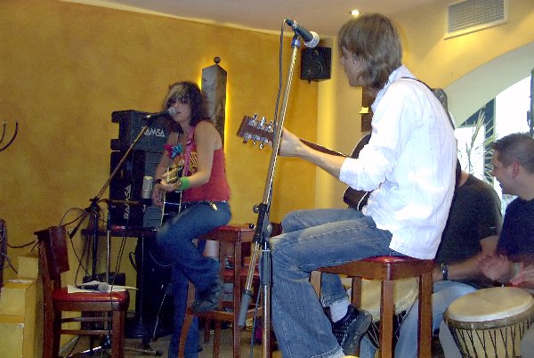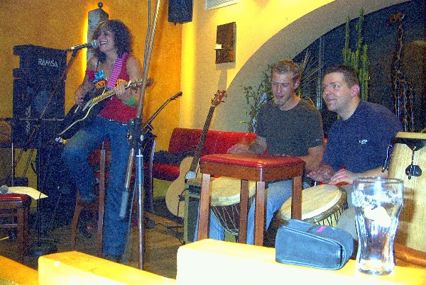 Miss Sisa (Luisa Ortu und Damian Copp) - diesmal mit zwei Trommlern als Begleitung. Superstimmung im brechend vollen Crocodile. Miss Sisa gaben eigene und gecoverte Songs zum Besten. Auch Gastsänger Sven war wieder mit dabei.