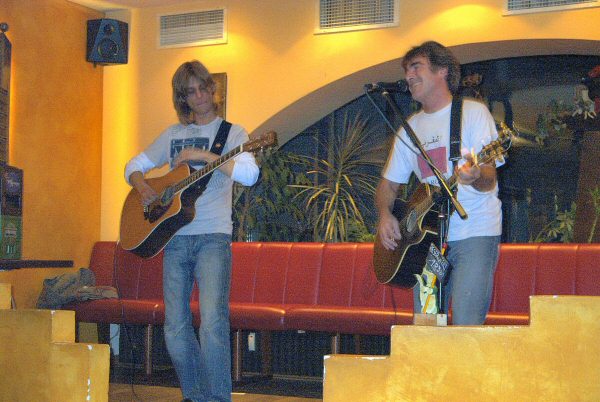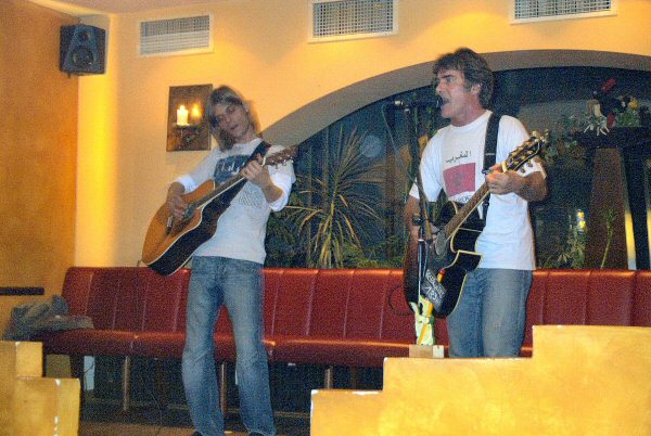 Phil Roberts aus Manchester im Crocodile - drei Stunden gecoverte Musik vom Feinsten. Aufgeteilt in drei Sets spielte und sang Phil Songs von Bob Dylan, den Beatles, den Rolling Stones, Neil Young und vielen anderen mehr. Wunderschöne Oldies, hervorragend interpretiert von Phil. Den ersten Set bestritt Phil alleine, den Rest des Abends dann zusammen mit Damian Copp. Zwei erstklassige Musiker und wunderschöne Songs. Was will man mehr? Und das am Vorabend von Marci's Burzeltag. Schöner kann man wohl nicht in den Geburtstag hineinfeiern!